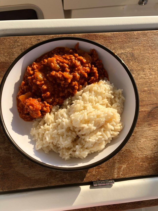 Con él hambre que tríos ha tocado cocinar hoy…para celebrar la llegada comida Cubana…picadillo de carne con arroz.