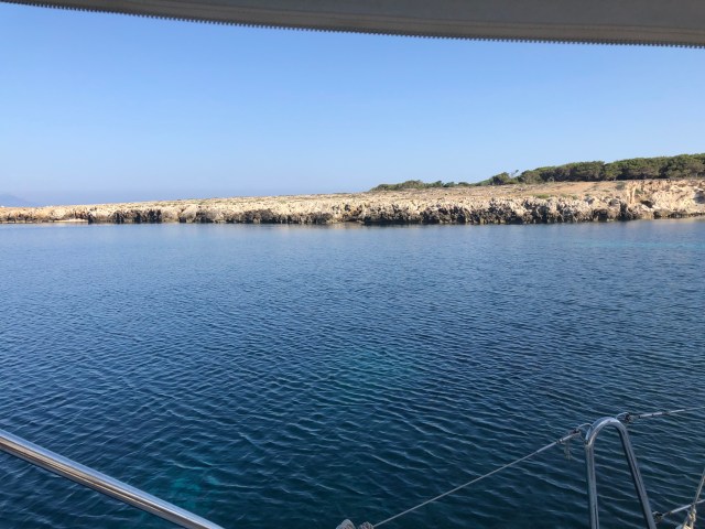 Noche movidita en el fondeadero con vientos de 15 nudos y rachas superiores. Ha habido que levantarse un par de veces en la noche a comprobar que todo estaba bien.