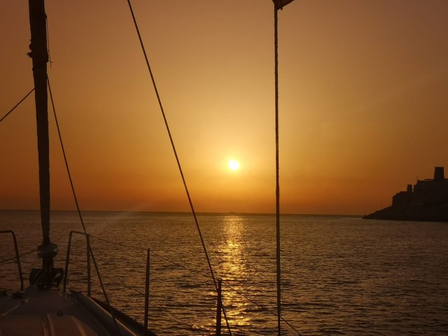23:30 Entrada por la bocana, 113 millas, 17h15min. Hasta mañana cofrades. Mañana vuelo de vuelta a Madrid, y volvemos el día 17 para salir el 18 hacia la bota de Italia con nuevos tripulantes. Descanso de blog los próximos 2 días. Un abrazo.