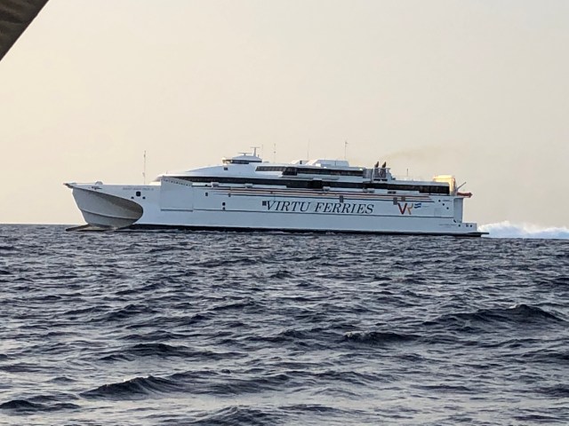 Claro que comparados con este Ferry que va a Sicilia y va a 36 nudos, parece que vamos parados.