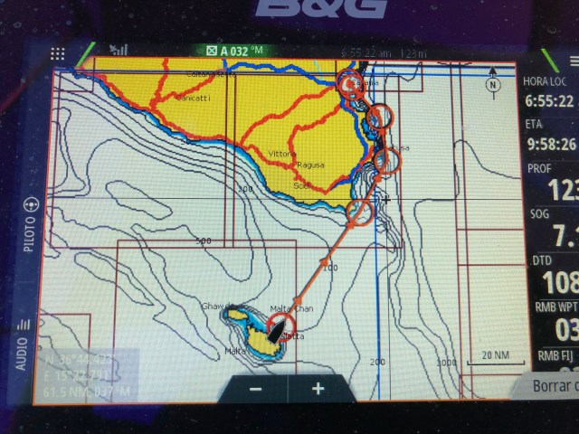 La ruta hoy es de 113 millas dese el Puerto de la Valetta al Puerto de Catania.