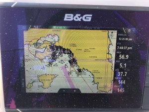 Hoy el equipo ha debutado con 26 nudos de viento…una súper actitud y aprendiendo en la escuela de la mar…ya nos han presentado al famoso viento Meltemi. Es un viento de componente Norte que sopla con fuerza los meses de julio y agosto en el Mar Egeo. Hoy en 10 segundos pasamos de ir a 9 nudos a ir a 26.