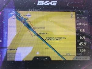 Y vamos a cruzar el canal de Corinto otra vez…después de hacer el papeleo y abonar los 160€ arrancamos.