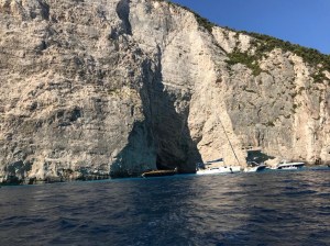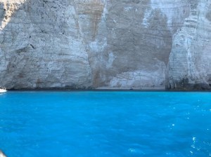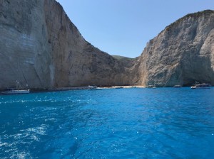 La playa se hizo famosa después de un accidente naval en el que las autoridades griegas persiguieron al naufragio del buque mercante «Panagiotis», sospechoso de contrabando de alcohol y cigarrillos hacia Zakynthos. El propio barco después de estrellarse formó la playa e hizo que la arena se acumulara a su alrededor, creando así este irreal tono azul de agua. Encerrada en grandes y escarpados acantilados que le dan una sensación remota e inaccesible, la playa sólo es accesible en barco.