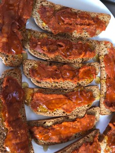 Seguimos reponiendo fuerzas con un poco de sobrasada menorquina con miel mientras admiramos la costa de Kefalonia