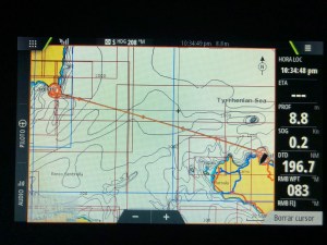 Seguimos avanzando, mucho mejor la noche, hemos podido dormir algo en intervalos de 20 minutos y ya nos encontramos a 21 millas del destino. Ya divisamos el faro de la Isla de Cavoli, isla más al Sureste de Cerdeña.