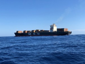 Nos cruzamos con el MSC Diego, un carguero de 260 m de eslora y 32 de manga.