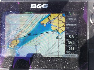 La meteorología de momento es buena y toco madera, no hay viento y vamos a motor, el poco viento que hay, apenas 2 nudos, nos da de aleta.